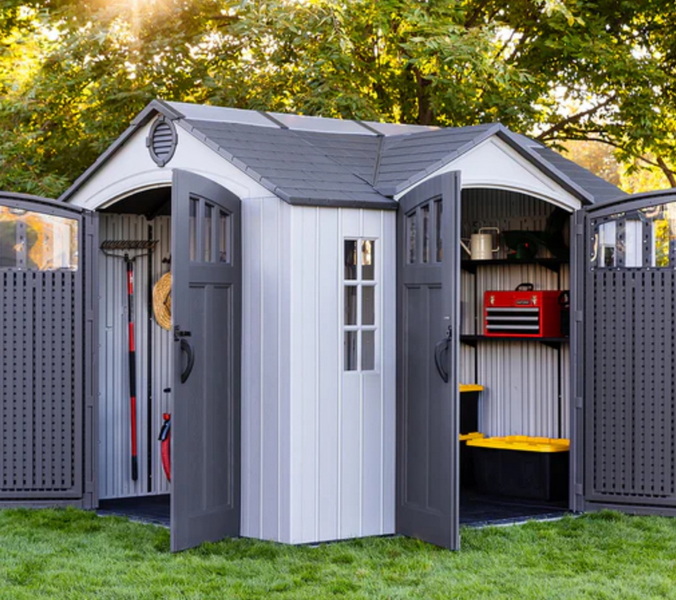 - Durable Construction: Many 8x10 sheds, like the Lifetime model, are made with high-density polyethylene panels reinforced with steel for strength and weather resistance.